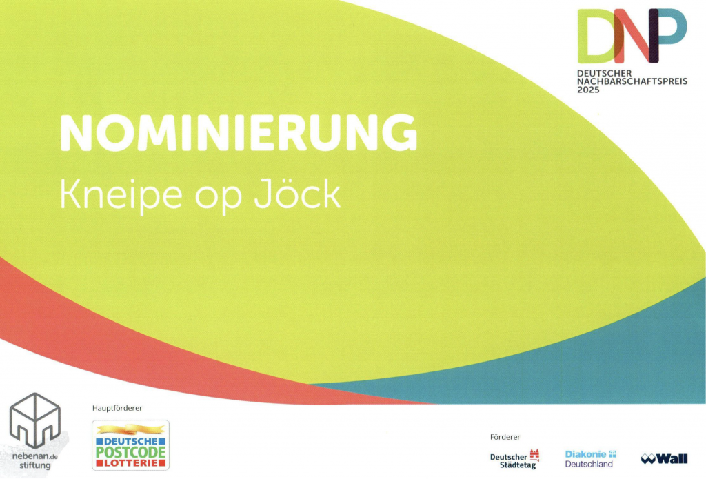 Wir sind mit Bier am Schirm / Kneipe op Jöck nominiert für den Nachbarschaftspreis 2025!